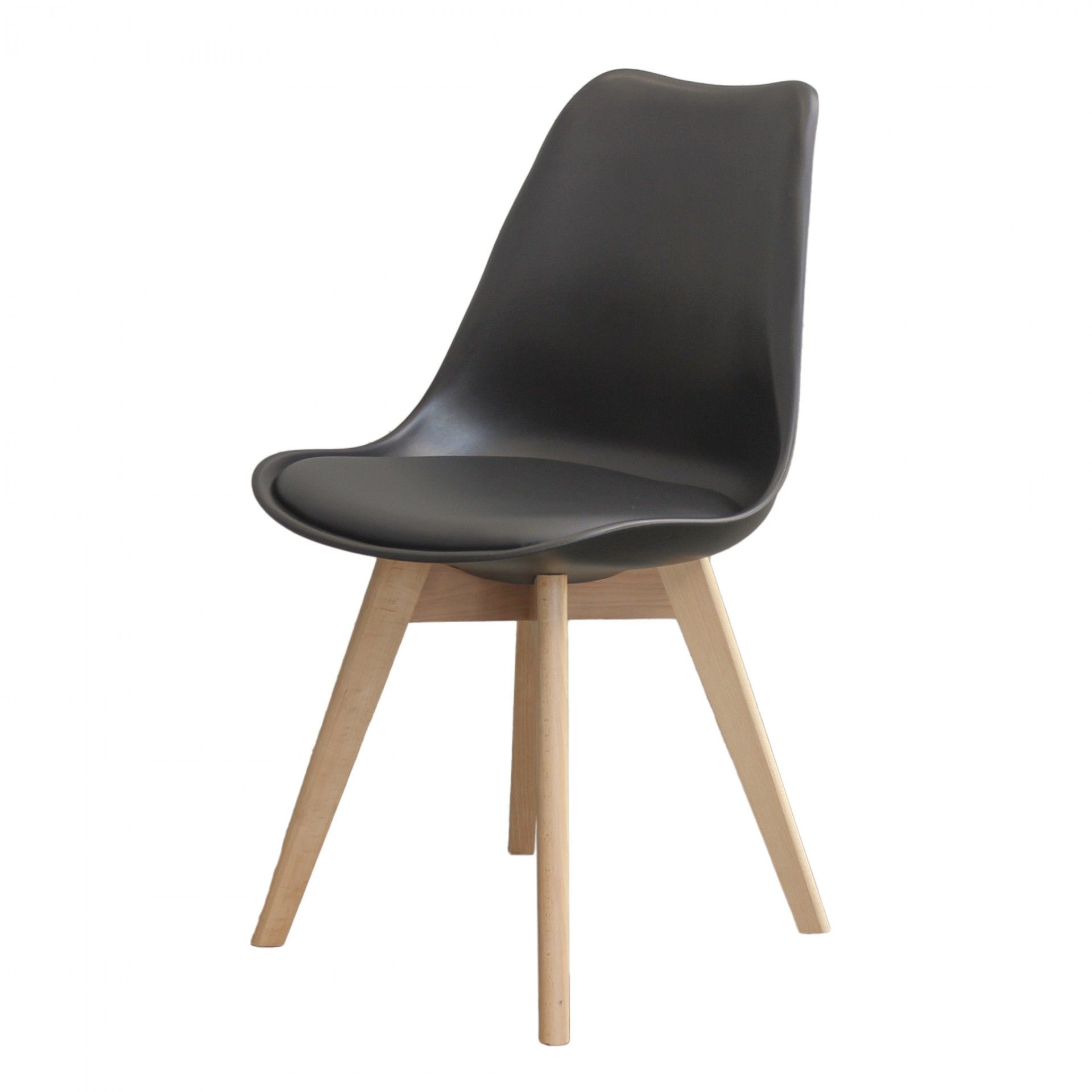 Cadeira em Polipropileno e PU (imitação de pele) também disponível em outras cores. Pés em madeira.