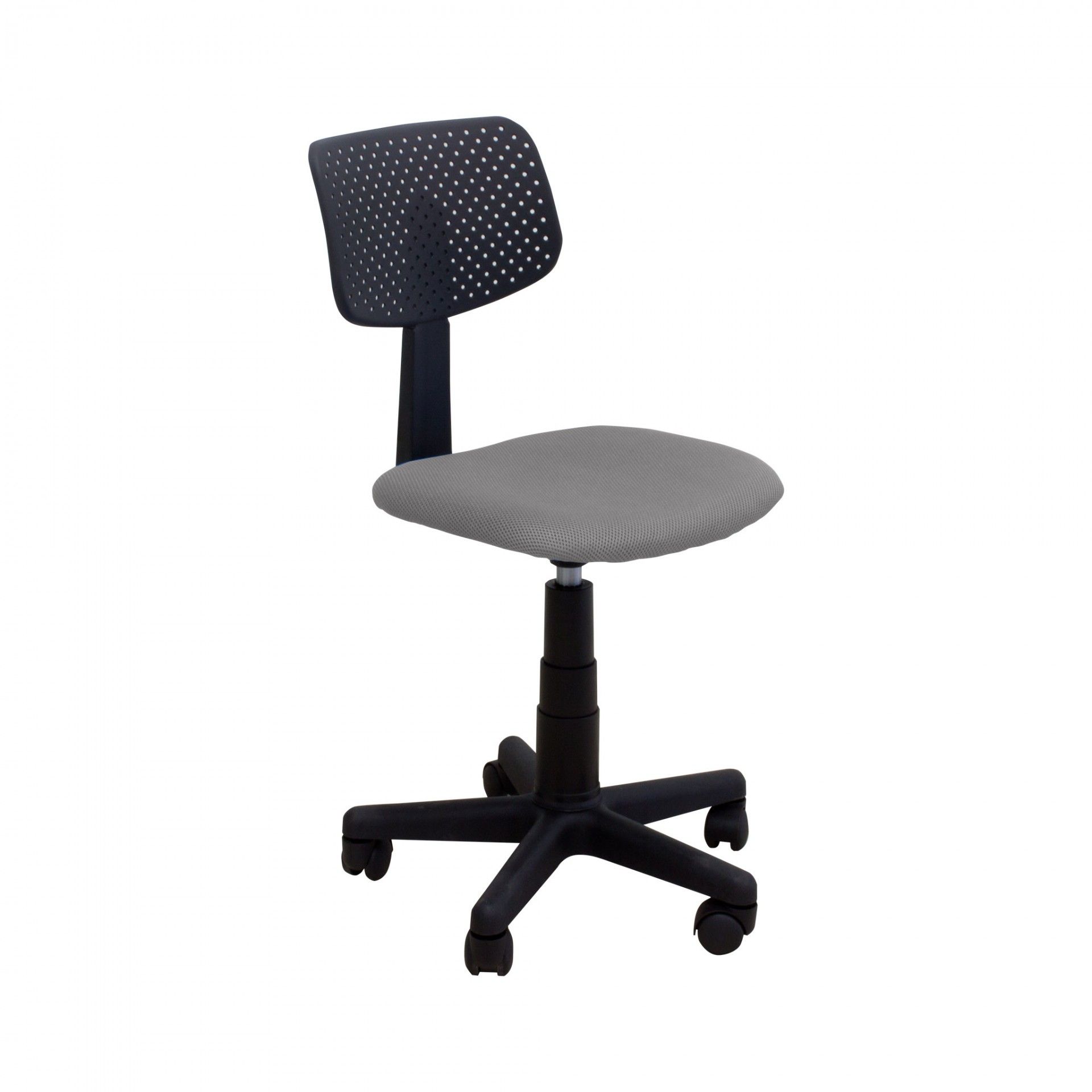 Cadeira giratória sem apoio de braços, com assento revestido a tecido.