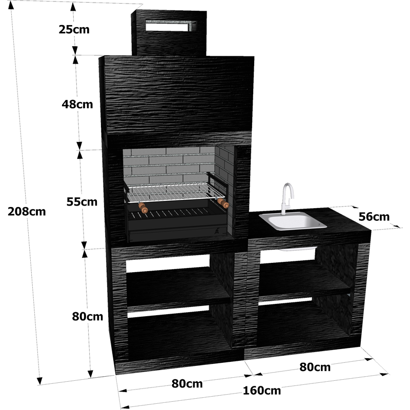 Churrasqueira Moderna CM40B – Conjunto Churrasqueira + Bancada Lava-Louça