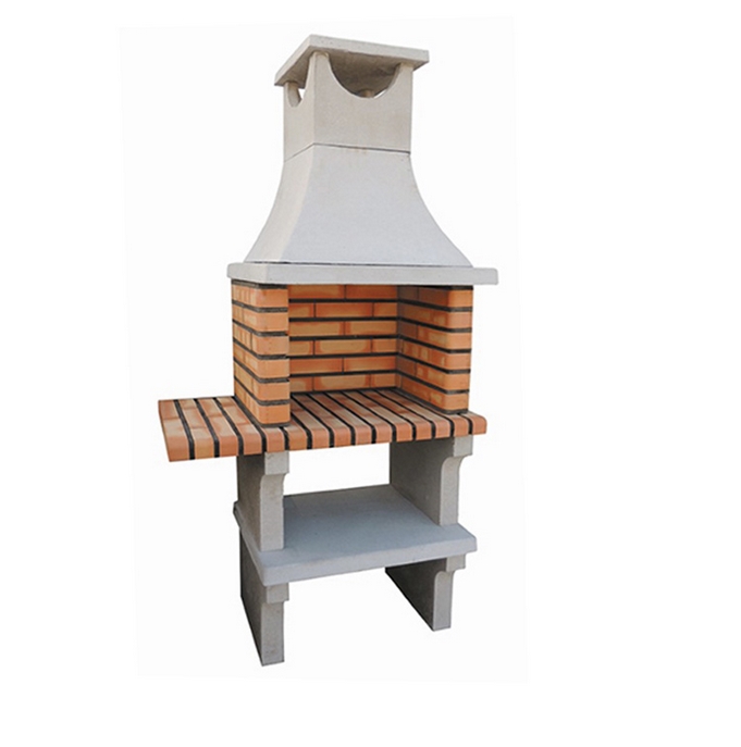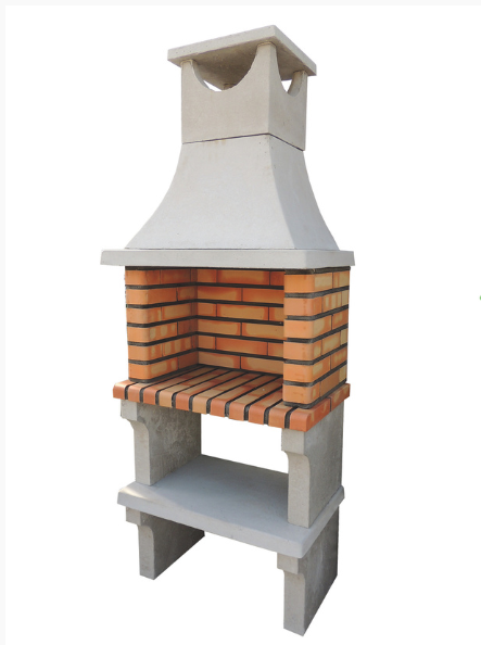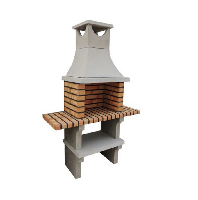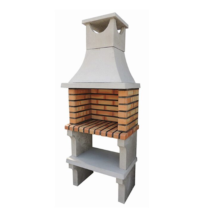 Churrasqueira em tijolo e betão, resistente e durável. Montagem modular simples, com opções de grelha, braseiro e prateleiras.