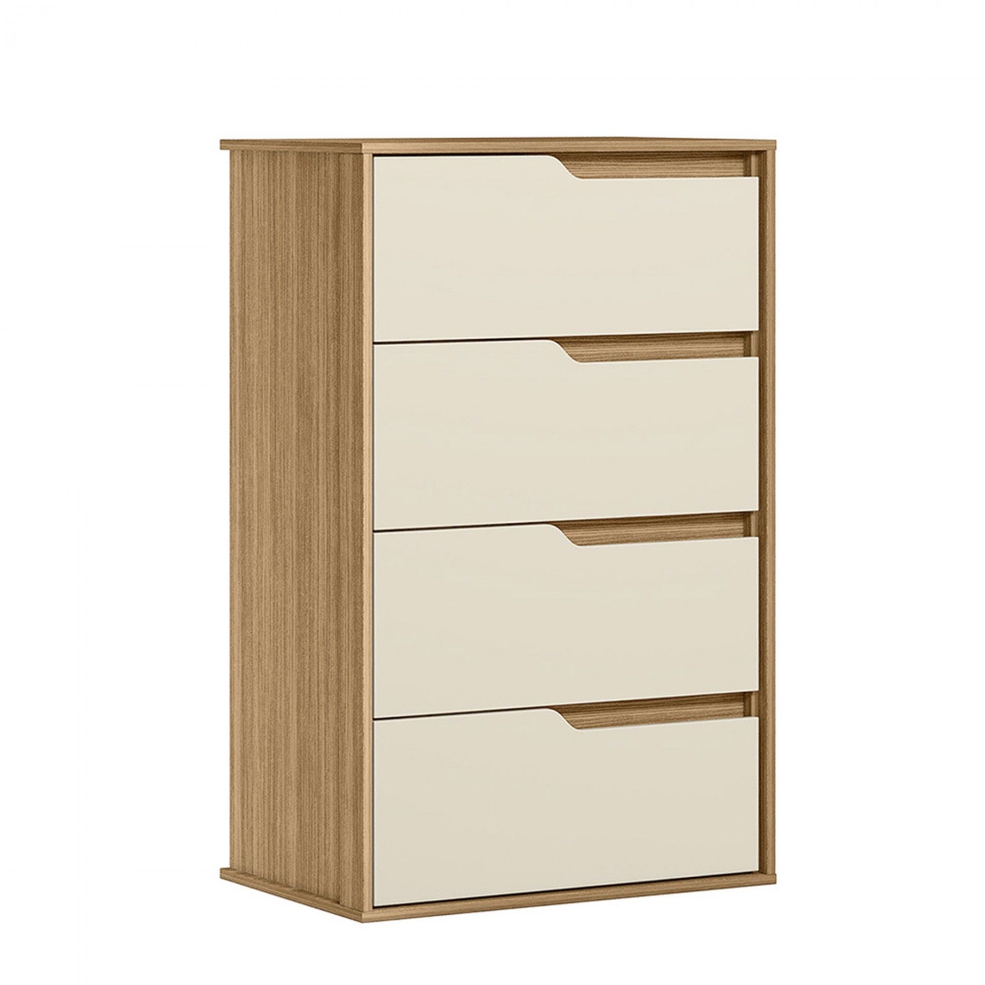 A coleção Evo para organizar coisas é versátil e encaixa-se em vários estilos decorativos. Tem um design moderno e simples, com uma estrutura em tom de carvalho. As gavetas têm cores neutras e puxadores embutidos atraentes, que são a marca registrada desta coleção.