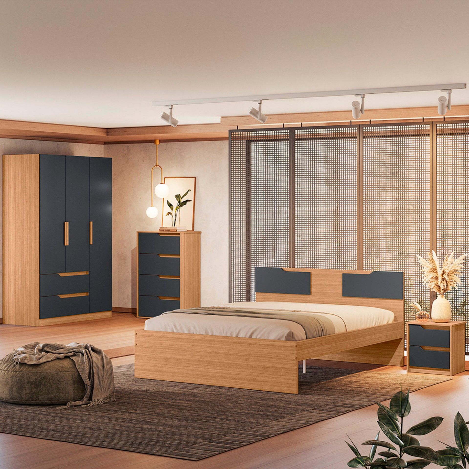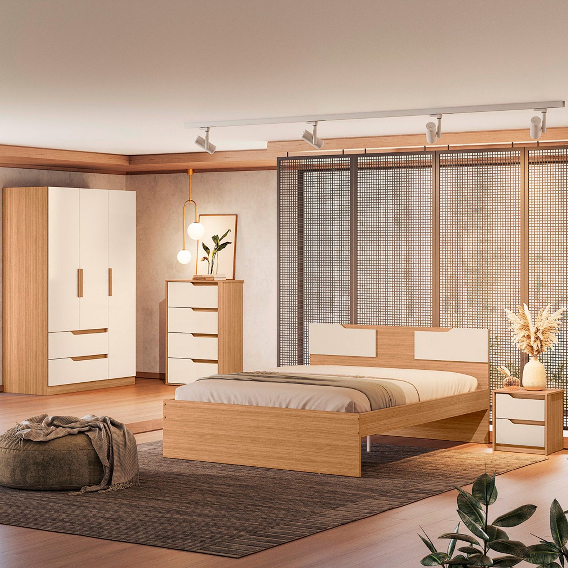 Fabricado em Aglomerado de Madeira revestido a cor carvalho e branco mate