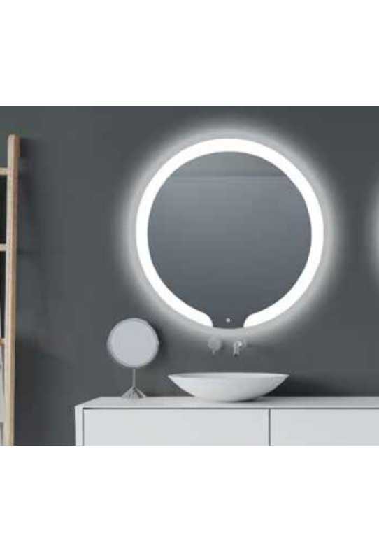 Espelho Led, modelo Saturno, disponível em 70cm e 90cm de diâmetro.