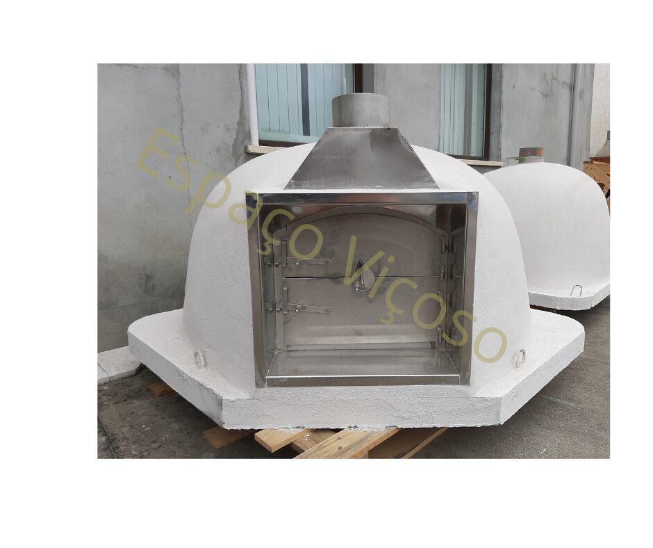O forno a lenha de canto Évora com porta em inox combina fabrico artesanal, durabilidade e um design inteligente que aproveita o espaço. Produzido em tijolo refratário, ferro reforçado e argamassa para altas temperaturas, garante cozedura uniforme e resistência ao uso intenso. A porta em inox confere um toque moderno e facilita a limpeza, enquanto o formato de canto reduz as medidas exteriores em cerca de 25 a 30 cm, mantendo a mesma capacidade interna.