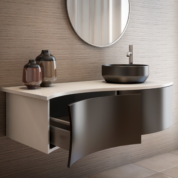 Este móvel Curvatto suspenso para casa de banho oferece funcionalidade e elegância, sendo uma adição perfeita para qualquer ambiente. Fabricado em MDF de 19mm de espessura, garante durabilidade e resistência. Equipado com um sistema de Soft Close, proporciona um fechamento suave das gavetas, evitando ruídos e batidas bruscas.