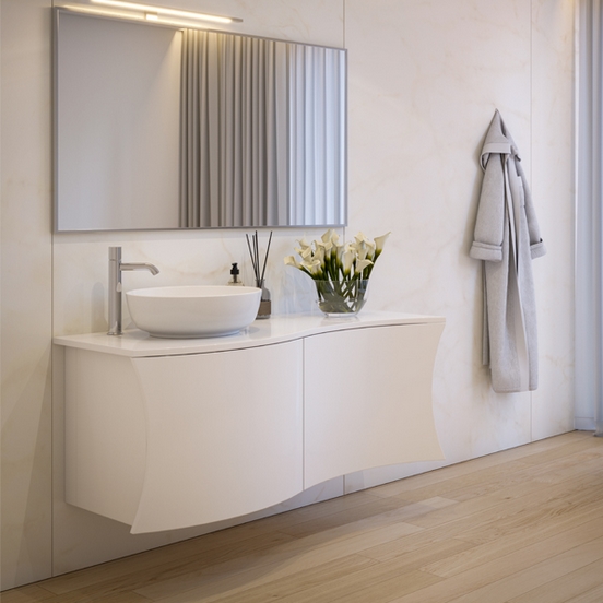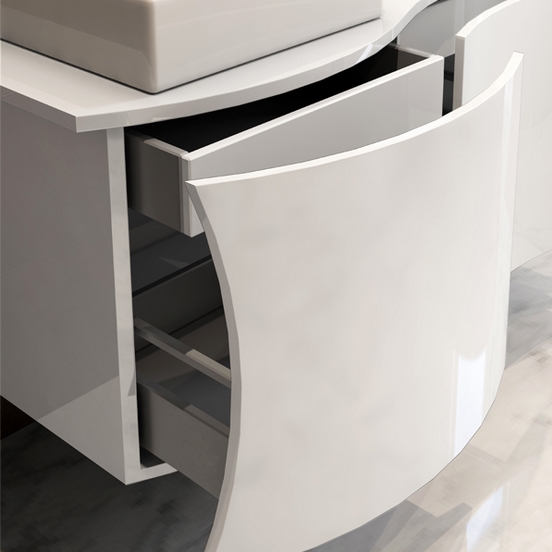 Este móvel Curvatto suspenso para casa de banho oferece funcionalidade e elegância, sendo uma adição perfeita para qualquer ambiente. Fabricado em MDF de 19mm de espessura, garante durabilidade e resistência. Equipado com um sistema de Soft Close, proporciona um fechamento suave das gavetas, evitando ruídos e batidas bruscas.