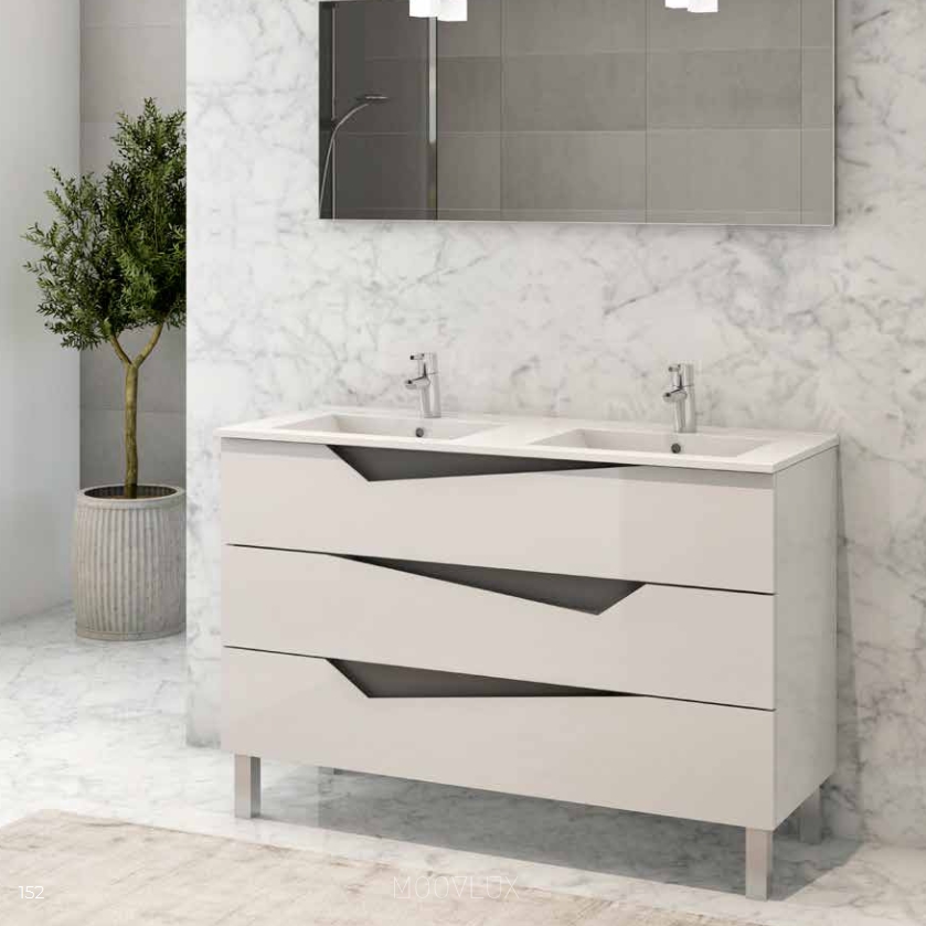 - L120 x A50 x P45 cm: Estrutura com 3 gavetas, 2 lavatórios