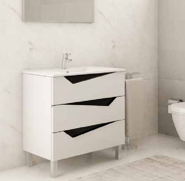 - L80 x A50 x P45 cm: Estrutura com 3 gavetas, 1 lavatório