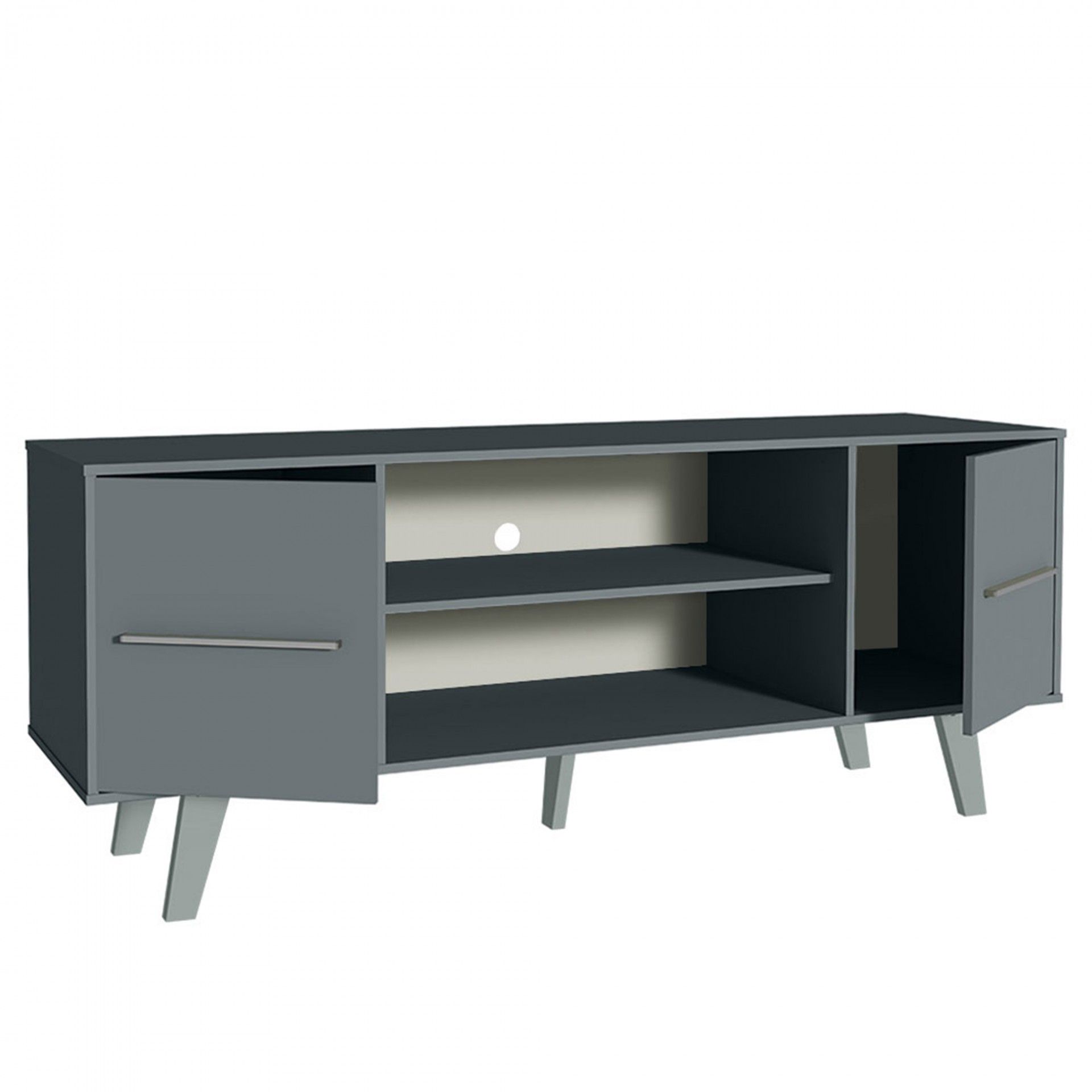Móvel TV Odense com 180 cm de largura, ideal para TVs até 65”. Fabricado em aglomerado termoprensado, oferece nichos abertos e porta basculante para arrumação. Design moderno, funcional e com entrega em até 10 dias.