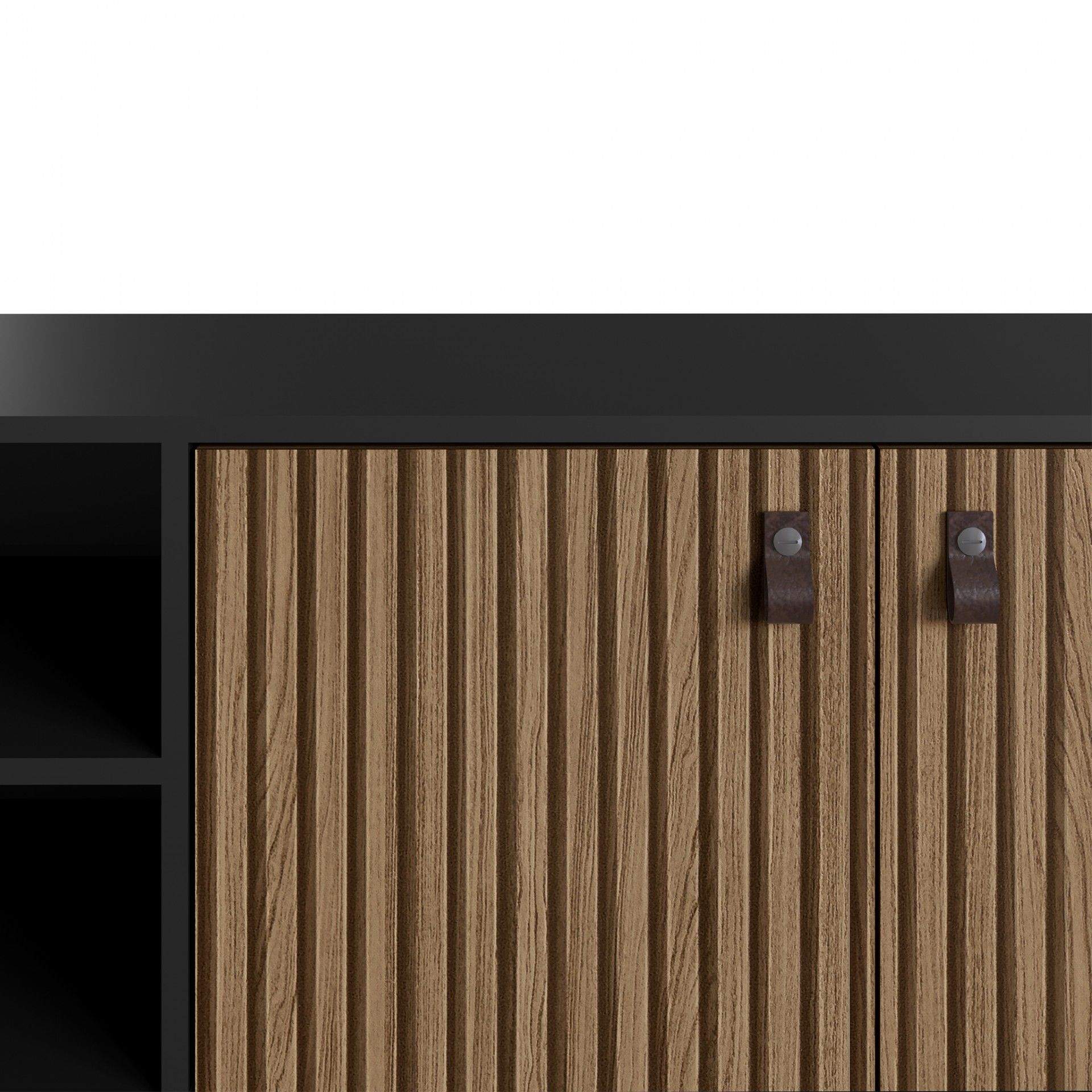 Fabricada em aglomerado de madeira revestida a MDF com imitação de ripado