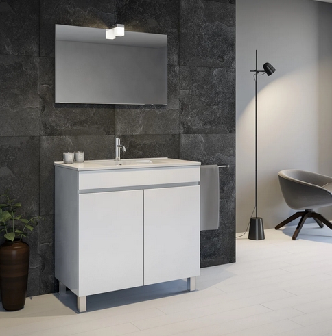 - L80 x A81 x P45 cm: Estrutura com 2 portas, Posição do Lavatório ao Centro.