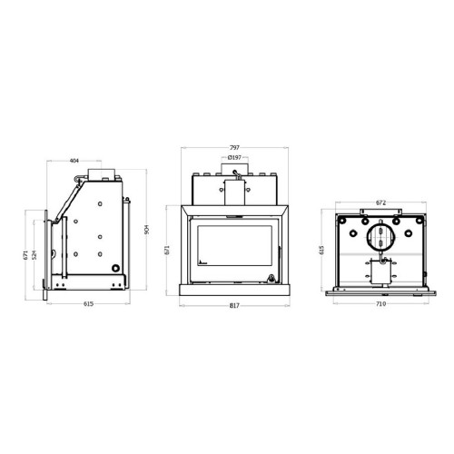 Compatível com lenha até 500 mm e chaminé de 200 mm.