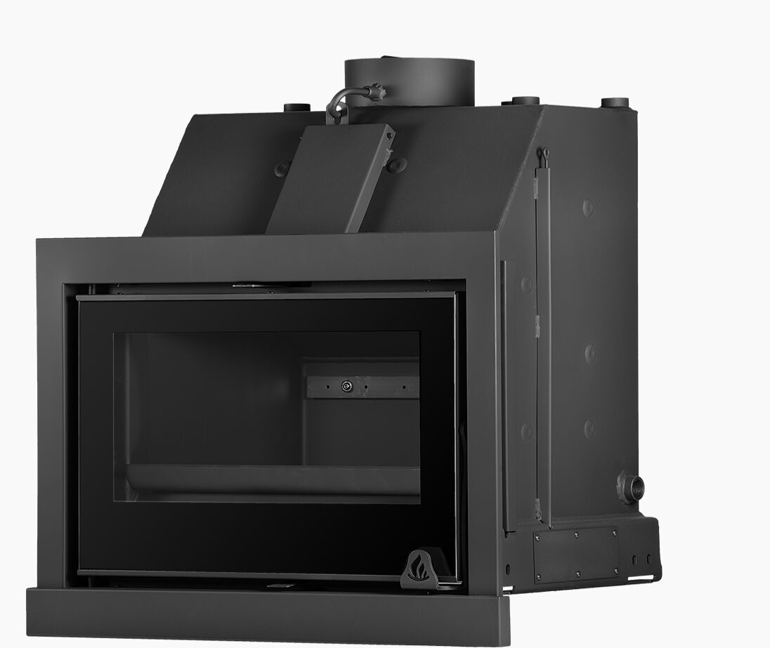 Compatível com lenha até 700 mm e chaminé de 200 mm, é ideal para espaços de maior dimensão.