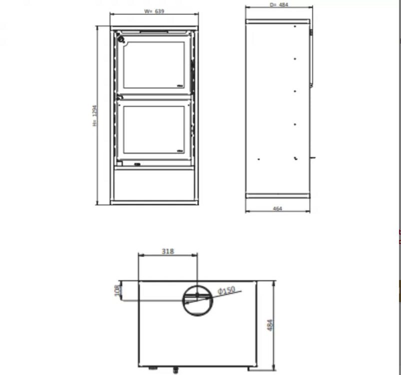 O design robusto suporta toros de lenha até 250 mm, o que facilita a utilização diária. Por outro lado, o peso de 166 kg reforça a estabilidade da salamandra. Enquanto isso, o diâmetro da chaminé de 180 mm e a depressão de 12 Pa garantem uma extração eficaz de fumos.
