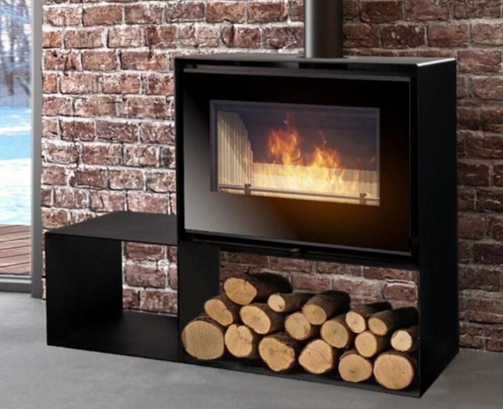 Salamandra a Lenha Free Air – Potência de 7,8 kW, ventilação regulável e lenheiro versátil (esquerda ou direita). Eficiência de 80,7%, design robusto em aço e vidro Neocerâmico resistente a altas temperaturas.
