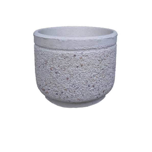 O vaso cilíndrico em betão com marmorite apresenta um acabamento britado, proporcionando um toque de elegância e rusticidade ao ambiente. Ideal para uso em áreas externas como jardins, varandas e espaços ao ar livre, adicionando charme e personalidade à decoração.