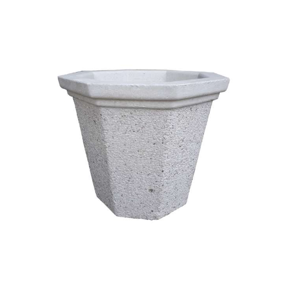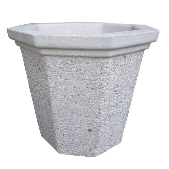 Vaso oitavado em betão com marmorite, apresentando um acabamento britado. Ideal para trazer um toque de sofisticação e estilo ao seu espaço, seja no jardim, varanda ou área externa da casa.